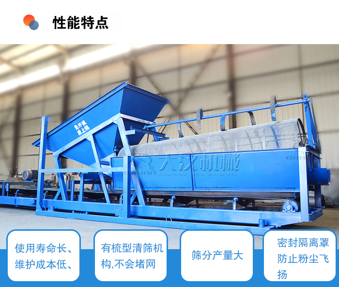 1、采用了滚动输送的原理,摩擦系数小、使用寿命长、维护成本低、且筛孔不易堵塞;