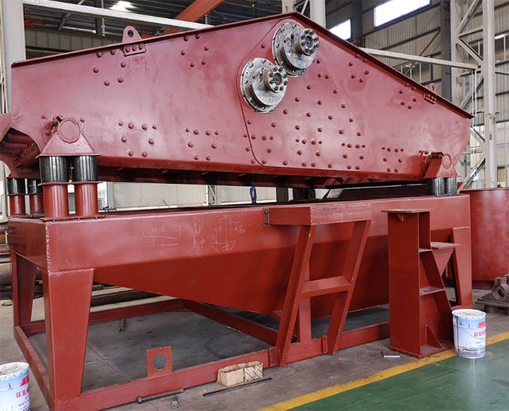 3、设置给料箱,保证物料能够均匀给入筛面,处理能力大,筛分效率高;