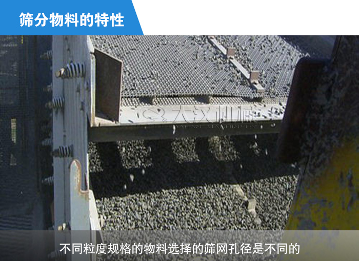 物料决定矿用振动筛筛分,物料的特性主要包括粒度大小、含水量等,在矿用振动筛选择时需要按照物料进行决定,如果物料的给料粒度为1-2mm,应选择筛孔为8-18目的筛网,不同粒度规格的物料选择的筛网孔径是不同的,用户在选择时需要向厂家说明自己的物料粒度要求。