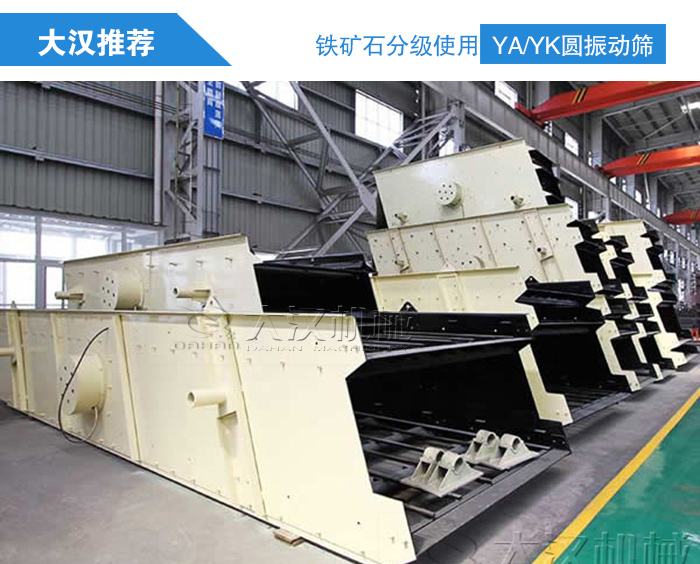 铁矿石是钢铁生产企业的重要原材料,铁矿石在经过破碎时候需要经过振动筛筛分已获得不同粒度要求的成品,那么铁矿石分级使用哪种振动筛比较好了,大汉厂家在这里向您推荐我们的YA/YK圆振动筛。