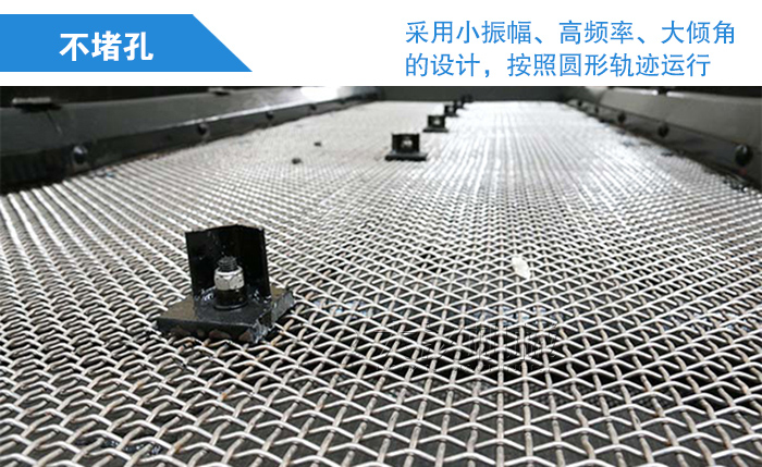 圆振动筛采用小振幅、高频率、大倾角的设计,按照圆形轨迹运行,筛面上的矿石不断翻转和松散着向前前行,小颗粒的铁矿石有更多机会透过物料层并完成筛分,同时圆形轨迹还可使卡在筛孔中的物料跳跃出来,避免了筛孔堵塞,提升了整台设备的筛分效率。
