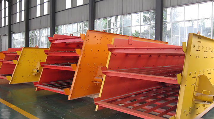ZSG 系列重型振动筛机身采用加厚钢板与加强筋结构,处理量100-1200 吨/小时,专门用于矿石原矿的大块坚硬矿物的粗筛,能适应矿山恶劣的高负荷工作环境。